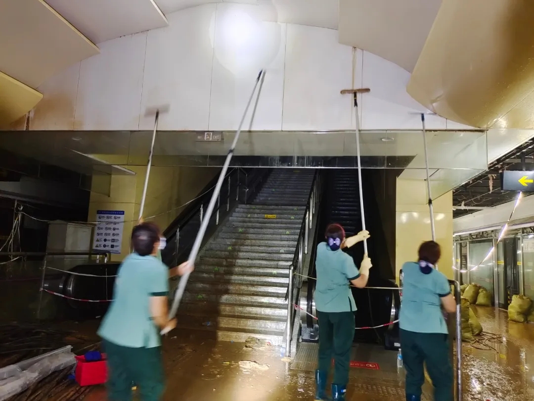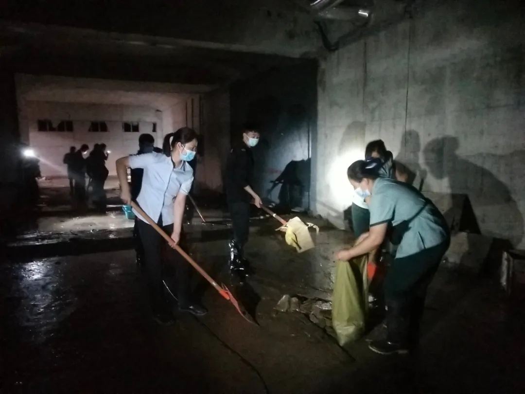在沒有照明的情況下,對未建設完成的出入口清淤排污,他們不怕臟不怕累,卷起褲腿,踏進厚厚的淤泥中,鐵鍬鏟泥,清水沖洗,將這里打掃的煥然一新。